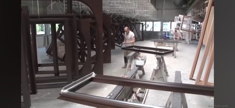 * другие сотрудники работают за станками: обрабатывают деревянные заготовки, профилируют детали, выполняют резку и формирование элементов дверных коробок и полотен;